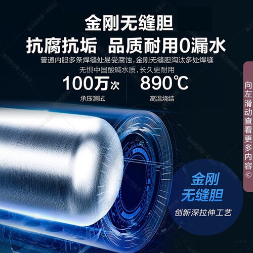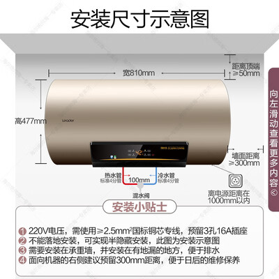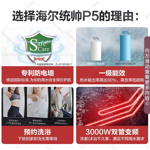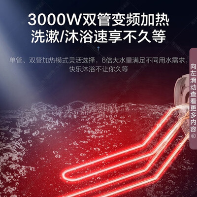 具有一键温水模式,开启后可以享有全天候的40℃温水。拥有主动防御技术,可以边沐浴边加热,无需反复拔插头。