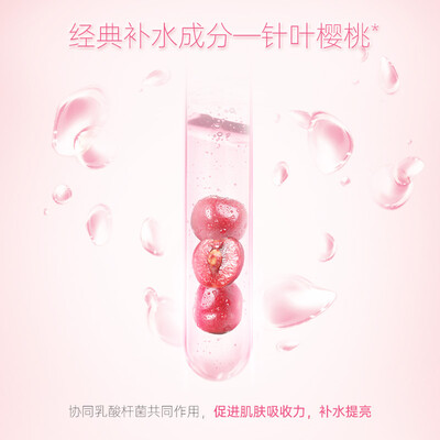 蕴含四种水溶性成分,为肌肤带来大量水分,舒缓干燥缺水问题;萃取樱桃精粹,质地水润粉嫩,彻夜密集补水,提升保湿力。