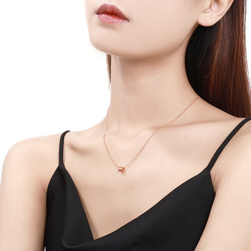 简单易戴的小蛮腰吊坠,加以滚边打磨处理,散发光彩展现时髦风范。镀玫瑰金色的工艺,衬托出白皙肤色,增添女性迷人风采。
