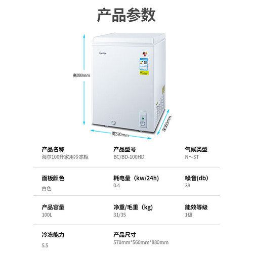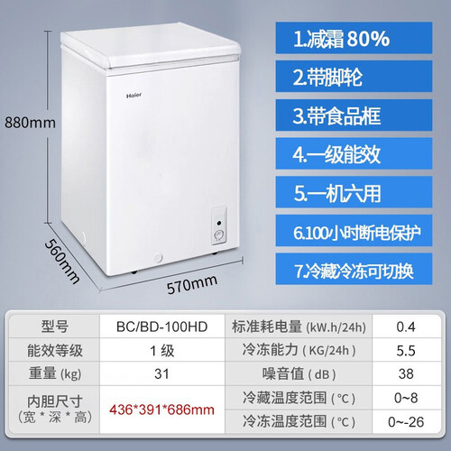 海尔 101升减霜 冰柜