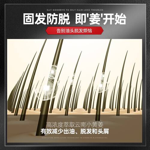 萃取云南小黄姜精粹,促进头皮血液循环,有效减少出油、脱发。添加三重植物育发成分,补充营养,促进生发,让头发浓密乌亮。