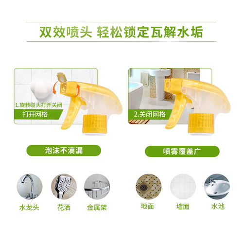 两种方法操作简单,喷头可转换设计,泡沫喷雾任意切换。瓦解污渍迅速,温和配方不刺激,且强效去污不留痕。