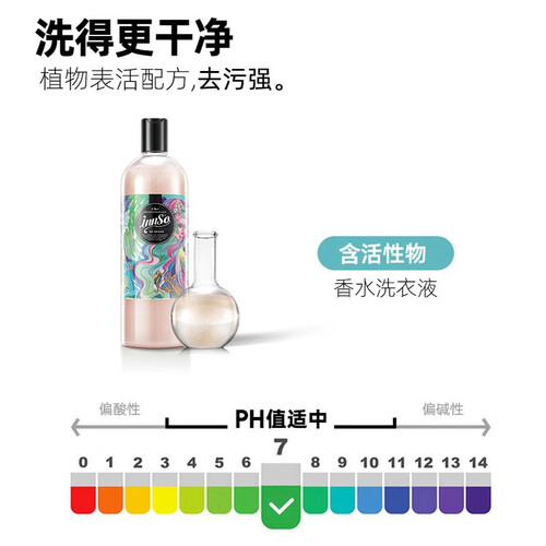 采用植物表活配方,泡沫适中易于溶解,去污能力出色,成分安全温和可被大自然吸收,洗衣安心又环保。