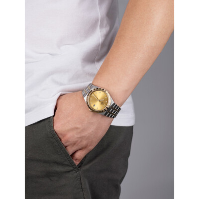 金色的表盘,精致又显华贵,配合简洁的的指针和刻度,更凸显极简的设计风格,结合精雕细琢的表冠,调时更方便,还防滑。