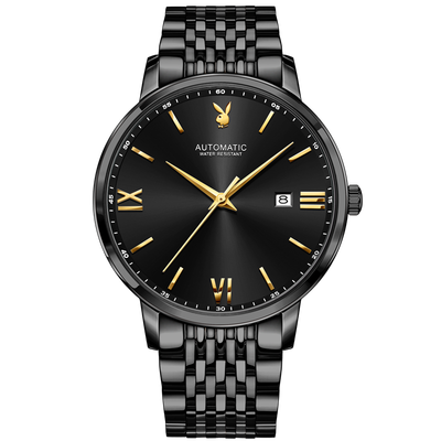 经典黑色盘面,结合金色元素,对比明显,读时更加一目了然。选用精钢材质,呈现纤薄时尚质感。采用立体钢钉,方便清晰读取时间。