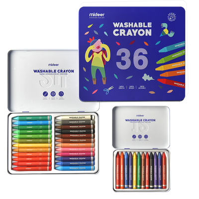 蜡笔不粘、不掉渣,不用担心画得到处都是。蜡笔自带衣服,怕脏宝宝也爱玩。铁盒包装,收纳方便,送礼有面。