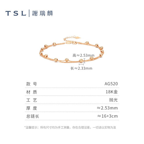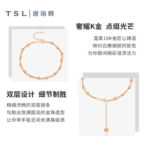 双层的手链设计,自带垂坠感和仙气,不会显得过于单调。素链搭配小金珠设计,美丽而不失时尚感,令人一见倾心。