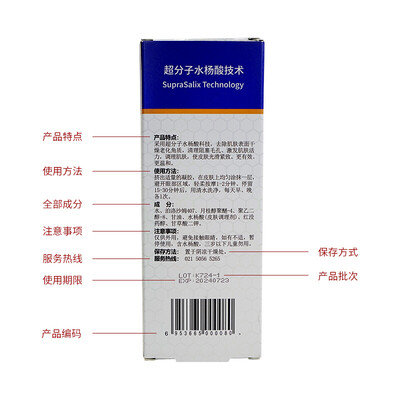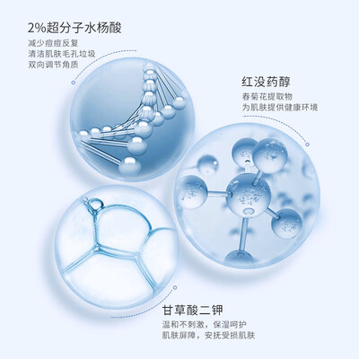 蕴含水杨酸成分,洁净肌肤污垢,修护痘痘肌,收缩毛孔,去除老旧角质,使肌肤细腻光滑。