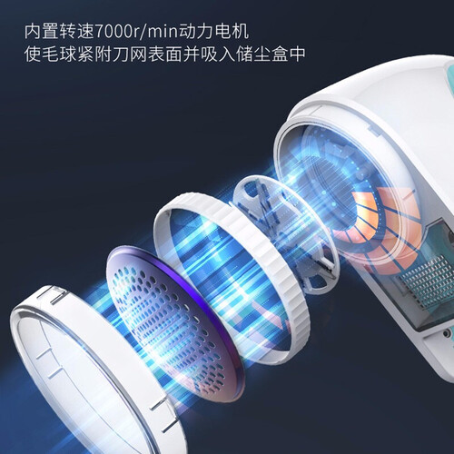 内置高转速的电机,去除的毛球能快速吸入储尘盒,不飞毛屑。拥有安全防护系统,网罩松动自动断电,保障使用安全。