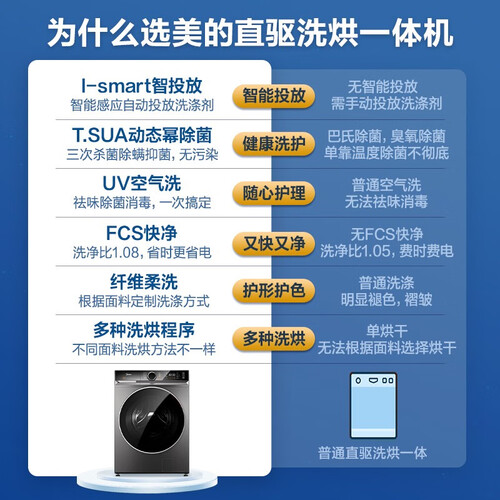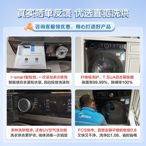 洗烘一体的设计,衣物洗净之后可直接进入烘干程序,节省晾晒时间,穿衣不久等。