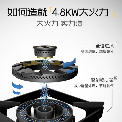 搭载脉冲点火技术,轻松瞬息点火,操作简单安全。采用聚能锅支架设计,减少热量外溢,有效节能省气。