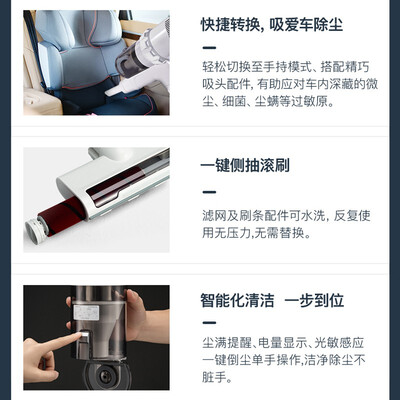 吸尘器自带LED灯,可点亮沙发底部,打扫卫生无盲区。支持立式收纳,随意摆放在家中各处,无需破坏墙壁。
