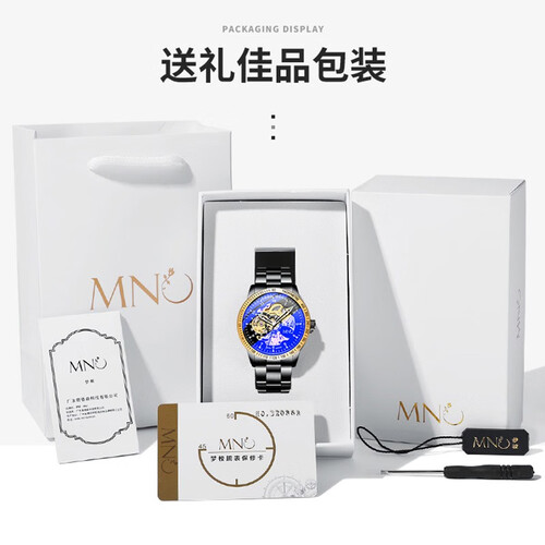 镂空机芯设计,能清晰看见内部机芯运转之美。搭配不锈钢表带,线条分明,光洁明亮,有立体感。夜光指针,读时方便。