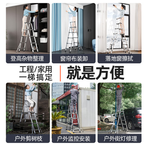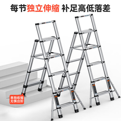 每节楼梯均可独立伸缩,高低不平的地面或有台阶时,可按需调节补足落差,使用广泛方便。增加两侧辅助脚,安全不晃。
