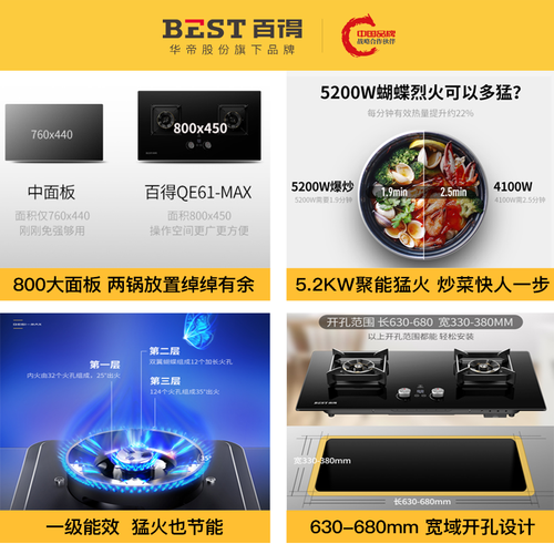 采用全进风系统,均匀燃烧,且火焰更稳定。选用蝶翼三层火焰,均衡大火力,快速烹饪美食,拒绝糊锅。