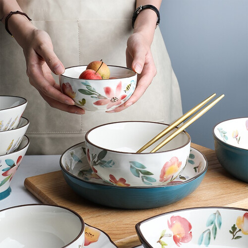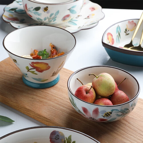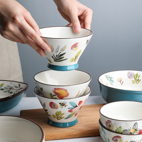 手工描绘釉下彩工艺制作,色彩鲜艳,不易磨损褪色,品质有保障。斗笠碗造型设计,加高碗底,端拿不易烫手。