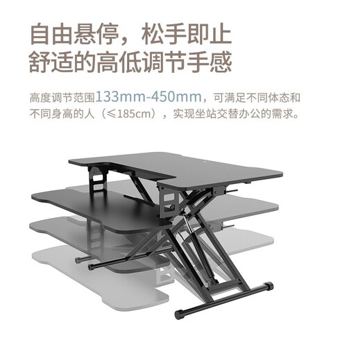 采用悬停功能设计,自由调整,松手固定高度。运用X型造型结构制作,提升稳定性,打字不易摇晃。