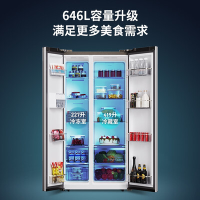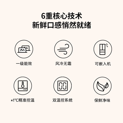 双频主动降噪,远离隆隆杂音,不扰安宁家居环境。风冷双控系统,实现均匀制冷,以达到更好的食材存储品质。