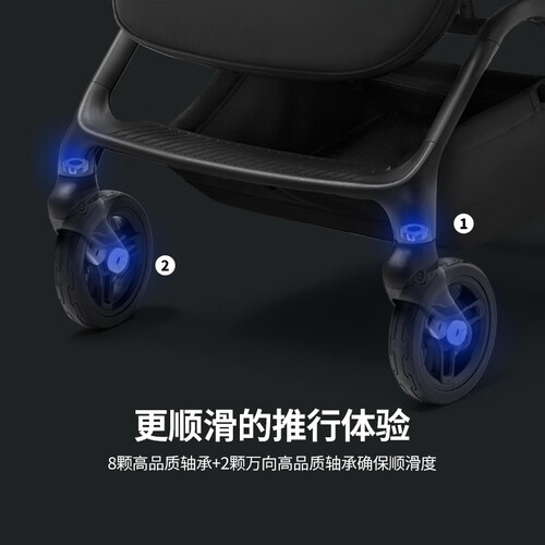 采用万向前轮,灵活换向,轻松推行大街小巷,久推也不累。配备U型扶手,可拆卸和旋转的同时,方便宝宝抱进抱出。