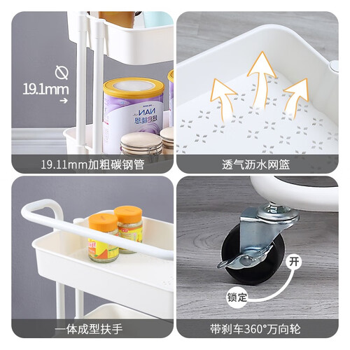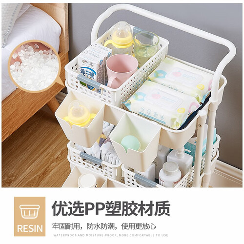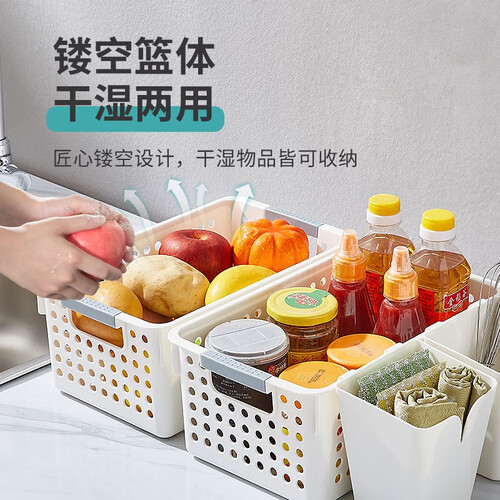 采用环保树脂ABS材质,环保无异味,使用更安心。而且选用沥水网篮设计,干湿都可以使用,不止是置物架还可以当菜篮、水果篮。