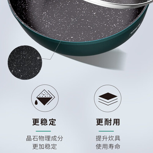 清新时尚的牛油果配色,造型别致又时髦,装点厨房环境。采用特有的不粘技术,炒食材不易粘锅,烹饪体验佳。