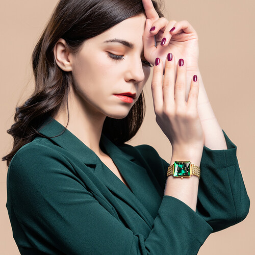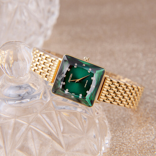 此款腕表搭配璀璨立体菱形表镜,散发钻石般闪亮光泽,佩戴更吸睛;采用水钻刻度设计,时刻闪耀,历久弥新。