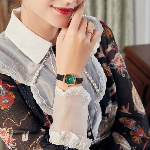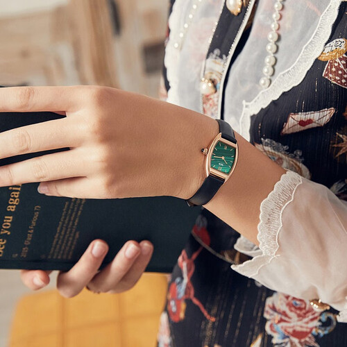 清新优美的绿色小手表,能够给你的腕间带来十足的呵护。酒桶设计造型,戴在手上俏皮而精致,纤薄而精美。
