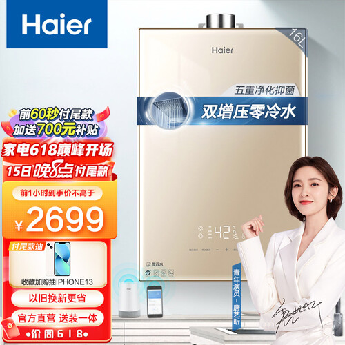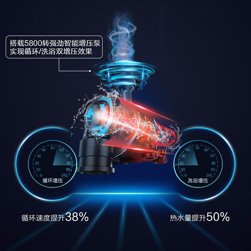 强劲的智能增压系统,可实现循环和洗浴双增压效果,全天畅享热水。配置的三种零冷水模式,澎湃热水量,满足全家人沐浴需求。