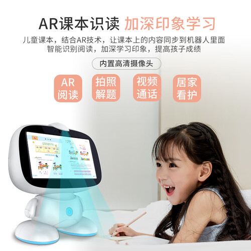 支持AR课本、AR绘本,直接将书本放在机器前端就会自动识读书本内容,并且投放在屏幕上,让学习变得简单。