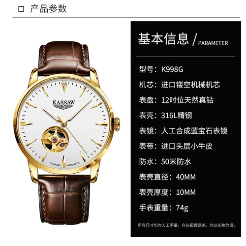 瑞士卡梭 纯手工镶钻男士腕表