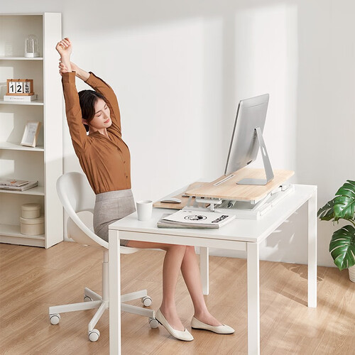 双层桌面搭配上显示器支架的设计,能够自由配置办公硬件,满足多种工作需求。加宽面板设计,可以放置更多物品。