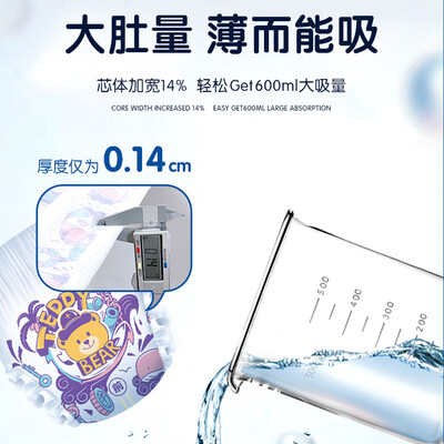 采用柔软蓬松的高透气材质,有利于空气快速流通,给予孩子肌肤健康呵护。内含高分子芯体,拥有强劲吸收力,防止发生漏尿。
