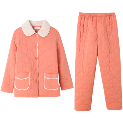 这款睡衣采用了加厚夹棉的材质打造而成,穿在身上保暖舒适。两侧的大口袋,轻松容纳日常所需,好用耐看。