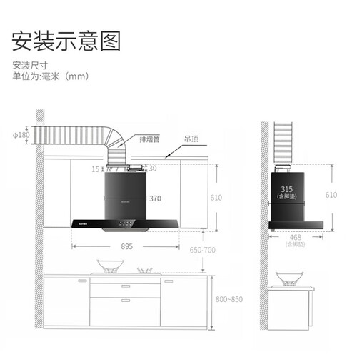 防碰头设计,机身深度仅有450mm,为灶台预留更加宽敞的空间,既不会阻挡烹饪视线,还能防止碰头,呵护家人烹饪安全。