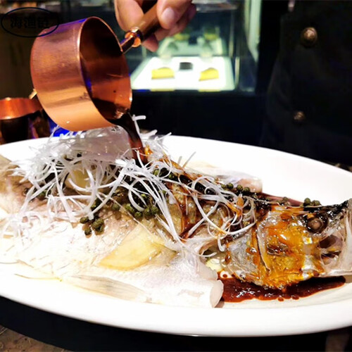 鲜活捕捞的虎纹斑鱼三去处理,鱼香味浓厚,不腥不腻,纹理细致完整,肉质十分紧致细嫩,滋味鲜爽,令人回味无穷。