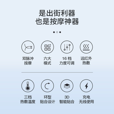 采用双脉冲按摩,有六种模式和16挡力度可调,让你轻松找到适合自己的按摩方式,远红外热敷,肩颈更舒适。