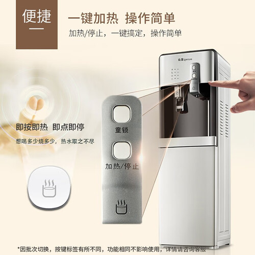 这款饮水机的加热速度非常快,无需久等,让你更快喝上热水,省时更省心。防撞圆弧设计,贴心周到,防止大声意外磕碰。