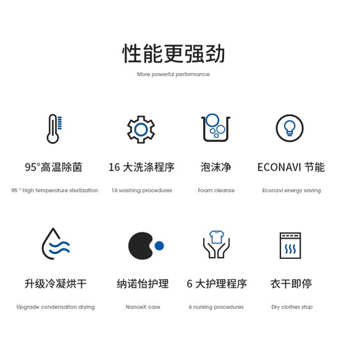 采用高温煮洗,呵护衣物的同时也能高效除菌,可用于清洗婴儿衣物。采用冷凝烘干系统,烘干的同时更加呵护衣物。