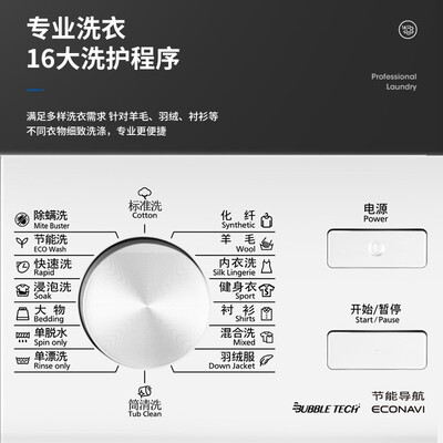 泡沫浸洗技术,可以全面的溶解洗涤剂,能有效减少出现泡沫残留的问题。升级了冷凝烘干功能,可令干透的衣服更加柔软。