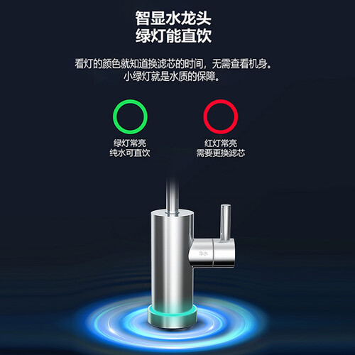 采用了纯水净水双出水路设计,直接饮用或者清洗果蔬都有安全保障。龙头灯光智能显示,水质看得见,饮用更安心。