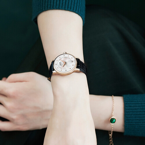 采用9.9mm纤薄表壳,佩戴轻便不沉重,长时间环绕腕间没有压迫感。结合雅致设计,简约大气,百搭日常服饰。