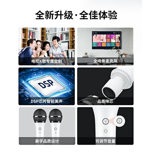 内置DSP芯片搭配数字音频处理技术,可智能美化声音,轻松唱出天籁之音。大气的外观设计,手感也舒适。
