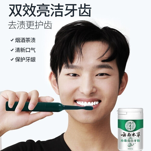 牙粉运用了草本植物配方,添加了珍珠粉成分,能够很好地去除口气。