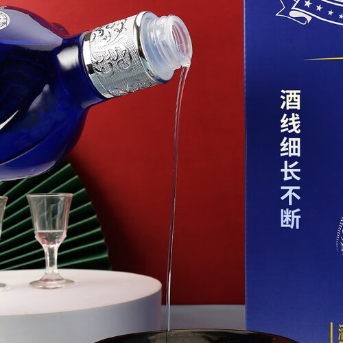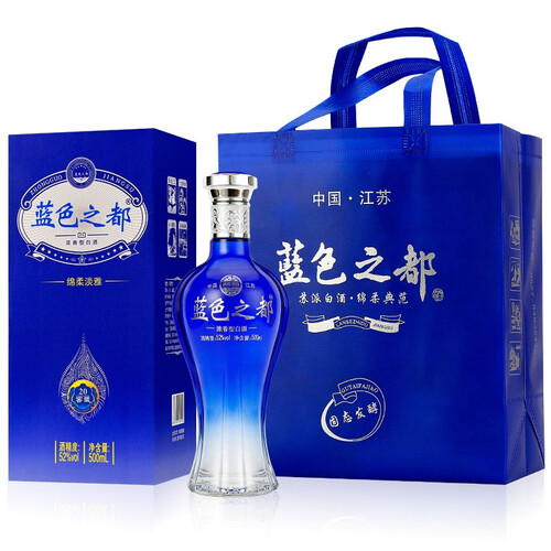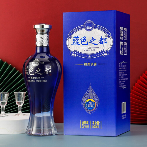 严选纯粮酿造,酒液纯澈透净无悬浮杂质,酒花匀称饱满,经久不散。渐变雅蓝瓶身,色泽过渡自然,富有设计感。