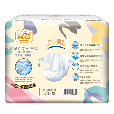选用多个国家的优质材质来创造。新升级的加量吸收搭配三层防护的面层来保证纸尿裤,有效的透气不会产生粘腻感。