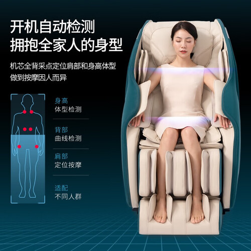 设计自动体型检测功能,满足不同身形人群的按摩需求。增加腰部热敷功能,促进血液循环,呵护腰椎健康。