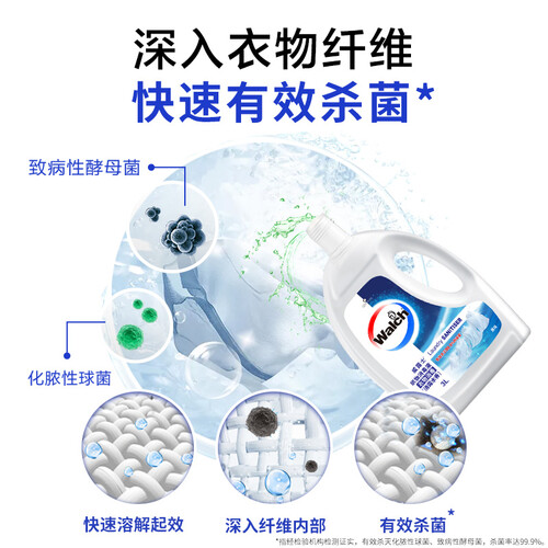 遇水后能够迅速溶解,并深入织物纤维内部,有效灭除多种常见有害菌,使衣物由内而外洁净,呵护穿衣健康。