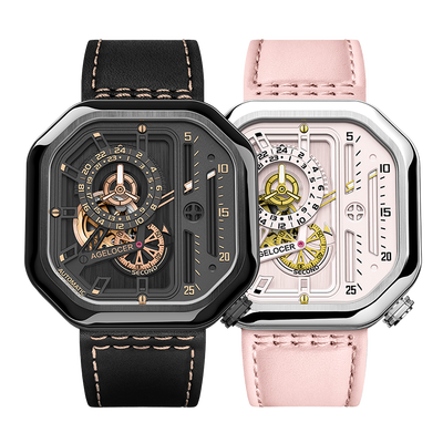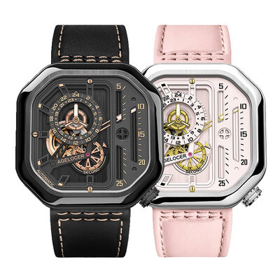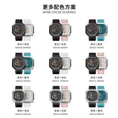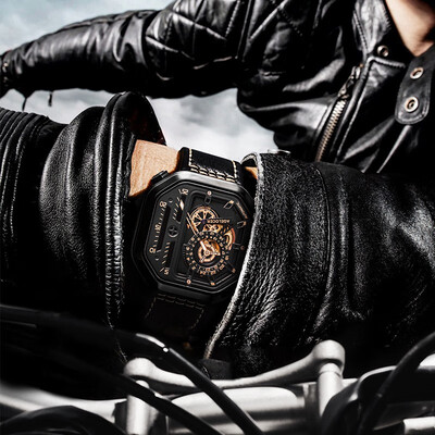 采用多层叠加镂空表盘,空间层次十足配色炫目,轻松诠释出硬朗朋克风。头层牛皮革精制表带,柔韧耐磨无惧久戴,易于日常保养。