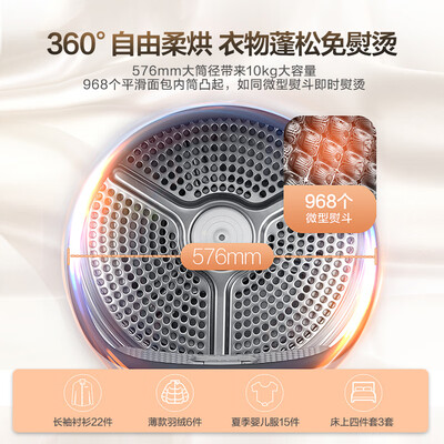 双层防烫视窗,阻隔热量,远离烫伤危险。搭载高精度传感器,避免烘干过度。熨斗型内筒,有效减少褶皱。
