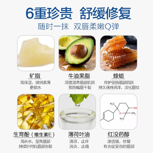 用上冰冰的,很舒服,效果明显嘴唇水润多了,抹在嘴唇上没有油腻的感觉,比较滋润,带着一点点香味。